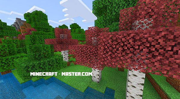 This set of textures changes the boring old boring texture of birch leaves to light pink and looks like a beautiful cherry tree.