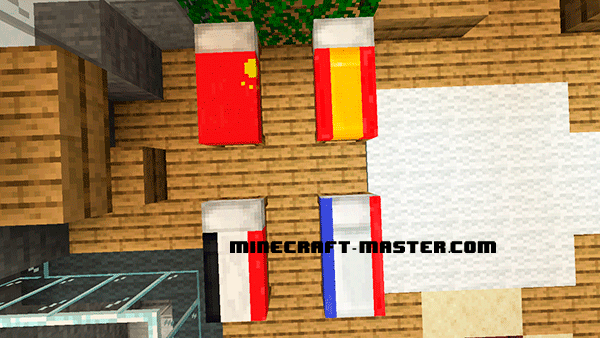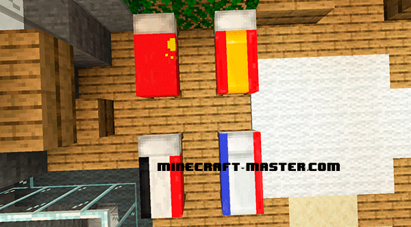 Bed that has the flag. In this texture pack you will have the Flags of: Spain, India, United kingdom, Australia, Argentina, Japan, China…